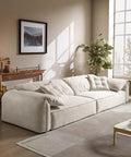 Experience optimal comfort and sophistication with the Elephant Ear Couch. Upholstered with a medium-hardness fabric, this sofa provides a firm support that ensures long-term usage. Its modern design and practical functionality make it a beloved choice among households. Its potential sofa bed function adds versatility to your living space.