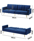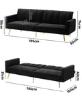 Oikiture 3-Seater Sofa Bed Velvet Black Blue Green