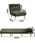 Oikiture Lounge Sofa Bed Polyester Single Seat Green Gray White