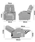 Other useful features include a convenient side pocket and two cup holders to facilitate easy storage of the remote control and other personal items plus enjoying delightful beverages with your favourite seated leisure pursuits.