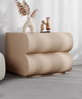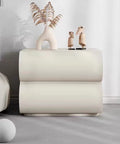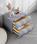 This bedside table boasts three spacious drawers made of durable wood. Its sleek design adds a touch of modern elegance to any bedroom. Organize and store your essentials with ease and style.