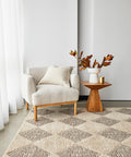 With a contemporary and sophisticated appeal, the Serenade Yuri rug embodies modern elegance. Its soft pile, in a harmonious blend of beige and latte colours, adds warmth and versatility to any neutral decor. The rug features a captivating diamond checker pattern, crafted through a unique textured effect achieved by the high-low pile construction. The beige high pile and latte low pile create a visually striking contrast, enhancing the depth and dimension of the design. Elevate your living space with the timeless beauty and plush comfort of this rug, adding a touch of modern charm and sophistication to your home.